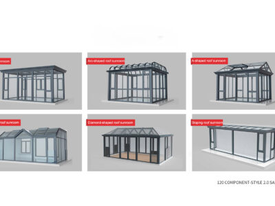 It can be used as a flat-roofed sunroom;arc-shaped roof sunroom;a-shaped roof sunroom;composite roof sunroom;diamond-shaped roof sunroom;sloping roof sunroom.